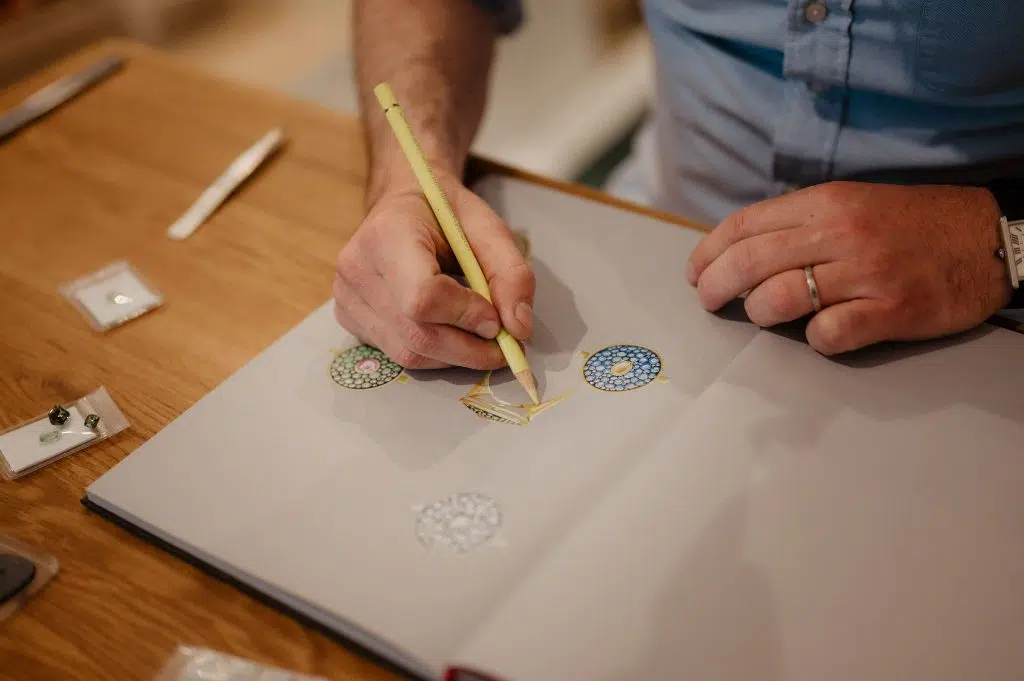Tout commence par un dialogue dans l’atelier, où vos envies, votre budget et votre projet sont discutés. Je réalise ensuite des croquis pour visualiser les différentes options et définir le modèle idéal pour votre bijou.
